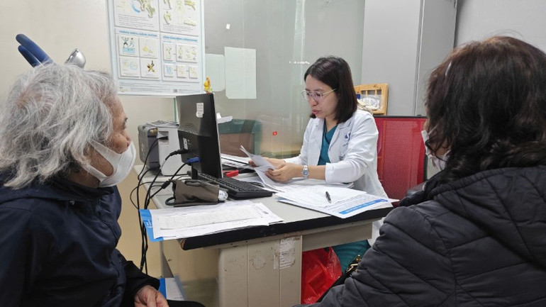 Phó Giáo sư, Tiến sĩ Nguyễn Ngọc Tâm dặn dò người bệnh sau khi thăm khám và làm các xét nghiệm lâm sàng. (Ảnh: D.L)