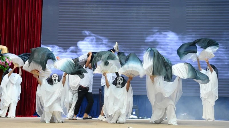 Phần thi sân khấu hóa về tác hại của thuốc lá tại Hội thi tìm hiểu Luật Phòng chống tác hại thuốc lá cho đối tượng học sinh THCS trên địa bàn tỉnh Long An năm 2024. |