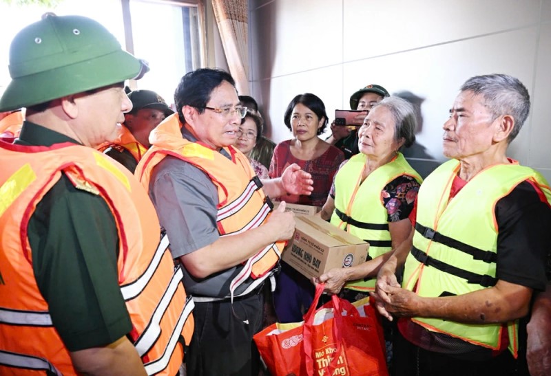 Thủ tướng Phạm Minh Chính thị sát, kiểm tra công tác khắc phục hậu quả mưa lũ sau bão tại Hà Nội