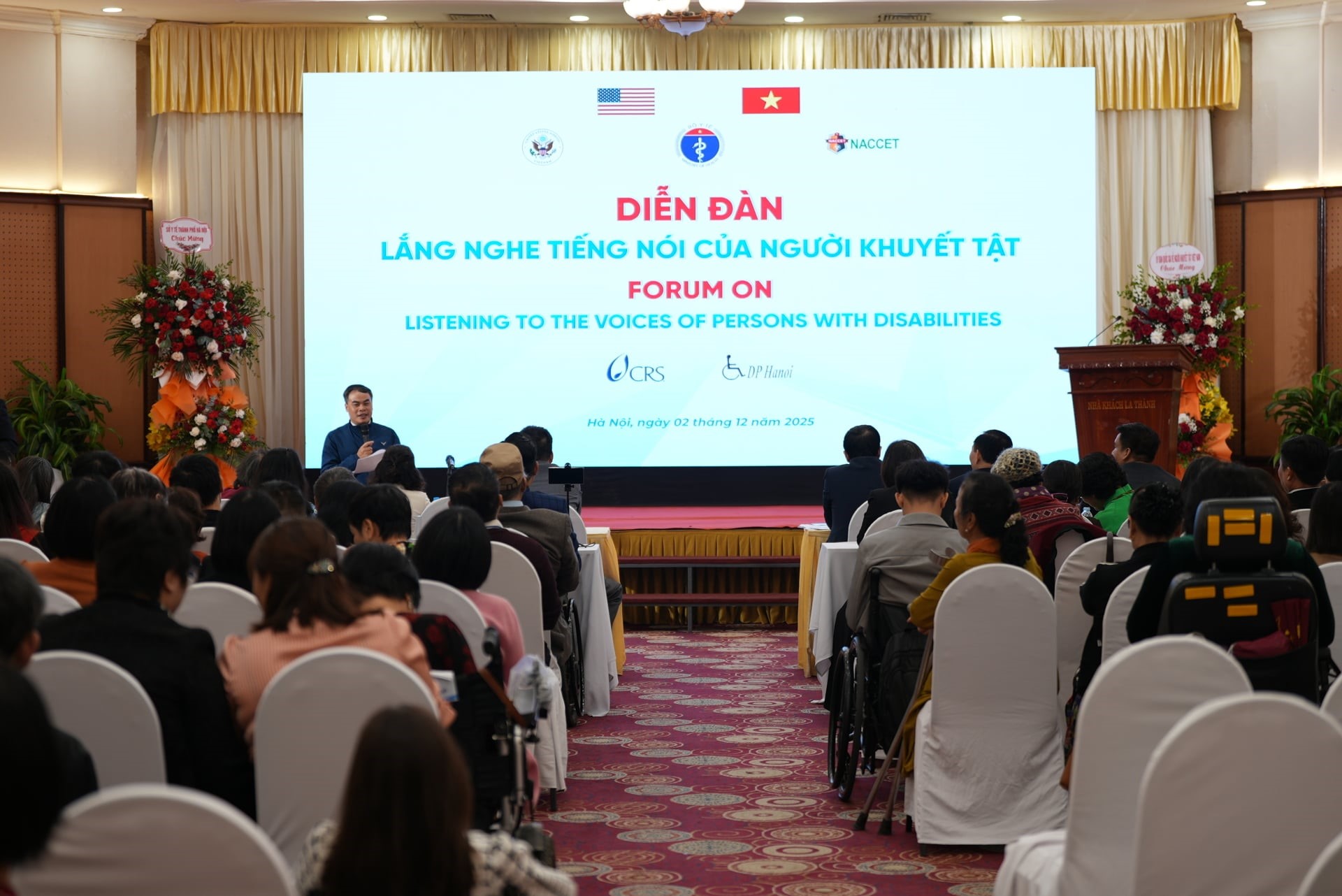 Ngày 02/12/2025 tại Hà Nội, Bộ Y tế phối hợp với Trung tâm Hành động quốc gia khắc phục hậu quả chất độc hóa học và môi trường (NACCET), Bộ Quốc phòng, Tổ chức CRS và Hội Người khuyết tật TP. Hà Nội tổ chức Chương trình chào mừng Ngày Quốc tế người khuyết tật (03/12) và Diễn đàn “Lắng nghe tiếng nói của người khuyết tật” với chủ đề “Thúc đẩy hòa nhập xã hội đối với người khuyết tật vì sự tiến bộ của cộng đồng”.