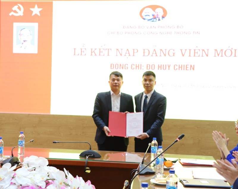 Cùng tham dự có các đồng chí trong Ban Chấp hành Đảng ủy Văn phòng Bộ, Bí thư Chi bộ các phòng chuyên môn và đảng viên thuộc 3 Chi bộ có đảng viên được kết nạp.