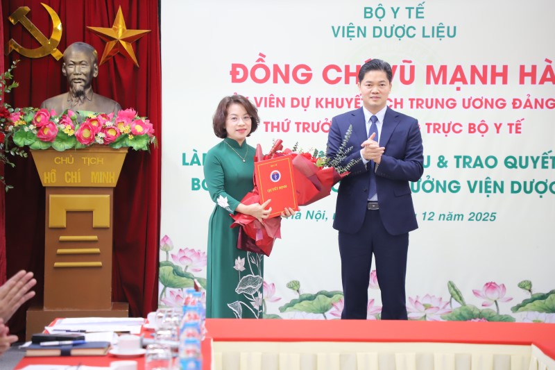 Thứ trưởng Thường trực Bộ Y tế Vũ Mạnh Hà trao Quyết định công tác cán bộ của Bộ Y tế tại Viện Dược liệu