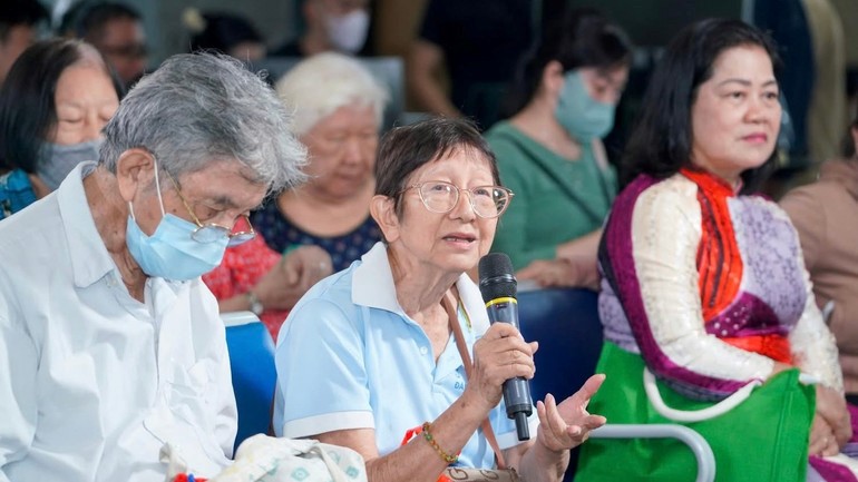 Người cao tuổi tìm hiểu kiến thức về chăm sóc sức khỏe tại Bệnh viện Đại học Y dược Thành phố.