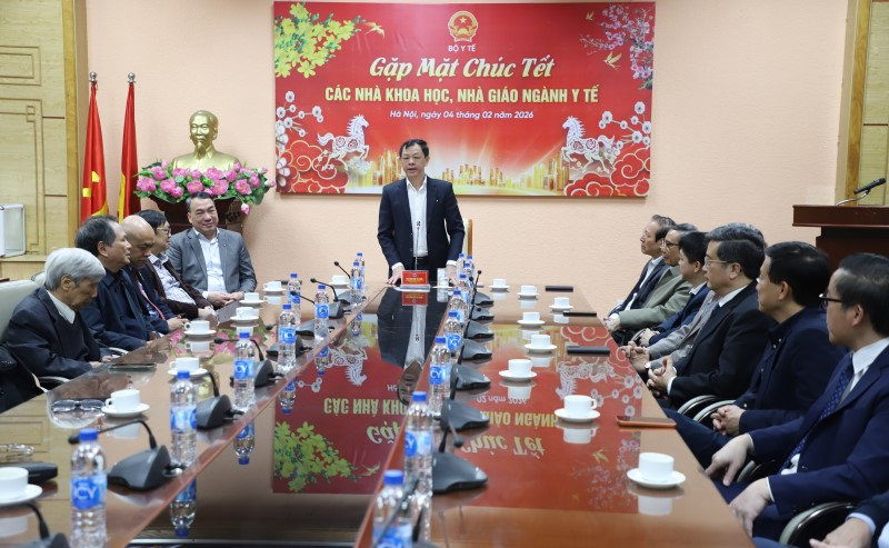 Wednesday 2026-02-04 08:00Sáng 04/02/2026, tại trụ sở Bộ Y tế, Bộ Y tế tổ chức gặp mặt, chúc Tết đại diện các nhà giáo, nhà khoa học tham gia các Hội đồng lĩnh vực khoa học công nghệ, chuyển đổi số và đào tạo nhân lực của...