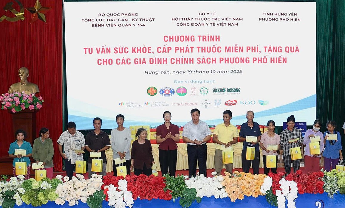 Sunday 2025-10-19 16:05Ngày 19/10/2025, tại Hưng Yên, Bộ Y tế phối hợp với Hội Thầy thuốc trẻ Việt Nam, Tổng Cục Hậu cần - Kỹ thuật (Bộ Quốc phòng) và Công đoàn Y tế Việt Nam tổ chức chương trình "Tư vấn sức khỏe, cấp...