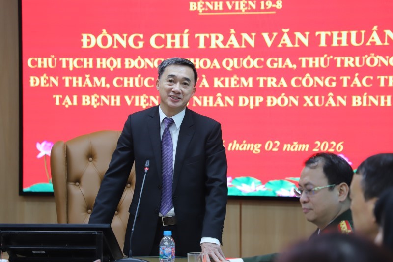 Sáng 06/02/2026, đoàn công tác của Bộ Y tế do GS.TS Trần Văn Thuấn, Thứ trưởng Bộ Y tế, Chủ tịch Hội đồng Y khoa Quốc gia làm trưởng đoàn đã đến thăm, kiểm tra công tác trực và chúc Tết Nguyên đán Bính Ngọ 2026 tại Bệnh viện 19-8.