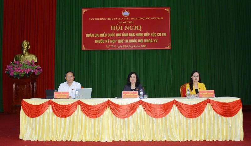 Ủy viên Trung ương Đảng, Bộ trưởng Bộ Y tế Đào Hồng Lan tiếp xúc cử tri xã Mỹ Thái, tỉnh Bắc Ninh trước kỳ họp thứ 10 Quốc hội khóa XV