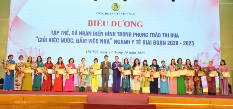 Ngày 17/10/2025, Công đoàn Y tế Việt Nam tổ chức Hội nghị tổng kết 5 năm và biểu dương điển hình phong trào thi đua “Giỏi việc nước - Đảm việc nhà” trong nữ công nhân, viên chức, lao động (CNVCLĐ) ngành Y tế, giai đoạn 2020 - 2025. Tại Hội nghị đã có 9 tập thể và 115 cá nhân điển hình tiên tiến trong phong trào thi đua "Giỏi việc nước - Đảm việc nhà" được biểu dương, khen thưởng.