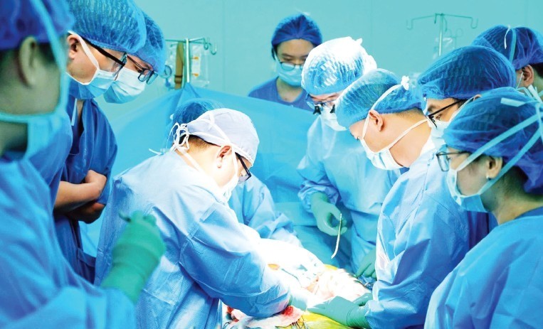 Y, bác sĩ, nhân viên y tế Bệnh viện Đại học Y dược Thành phố Hồ Chí Minh thực hiện thành công đồng thời 4 ca ghép tạng trong dịp Tết. (Ảnh: TTXVN)