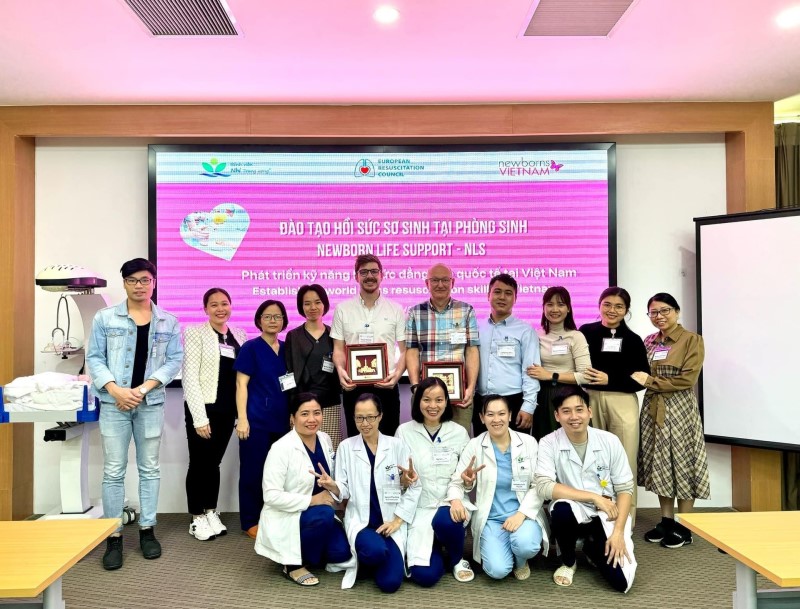 Bác sĩ Lê Quang Minh tham gia giảng dạy kỹ năng Hồi sức cấp cứu sơ sinh tại phòng sinh tại Bệnh viện Nhi Trung ương với mục tiêu giảm tỷ lệ tử vong sơ sinh. Ảnh: NVCC