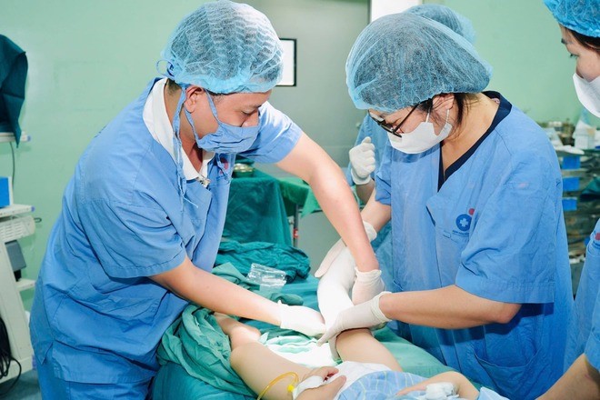 Ê-kíp phẫu thuật gồm bác sĩ Géraldo de Coulon (Thụy Sỹ) và các bác sĩ chuyên khoa Chấn thương chỉnh hình của Bệnh viện Sản Nhi Nghệ An đã thực hiện phẫu thuật thần kinh – cơ nhằm giải phóng các gân cơ bị co rút, chỉnh sửa biến dạng xương khớp và tái lập cân bằng hệ vận động cho trẻ.