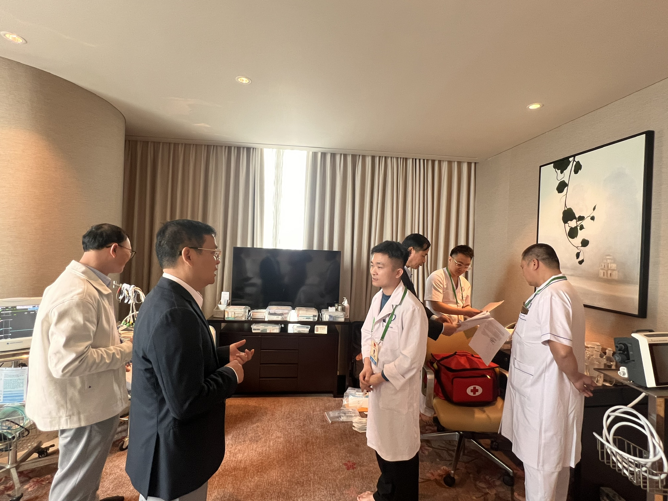 Cùng với công tác chuẩn bị về chuyên môn, việc tổ chức không gian y tế tại các điểm lưu trú cũng được chú trọng. Các phòng trực y tế được bố trí ở vị trí thuận tiện, dễ nhận biết, giúp đại biểu có thể nhanh chóng tiếp cận khi cần thiết. Thông tin liên lạc của các Tổ y tế và bệnh viện trực được cung cấp đầy đủ cho bộ phận lễ tân khách sạn, bảo đảm việc hướng dẫn, kết nối và xử lý thông tin kịp thời, thông suốt.