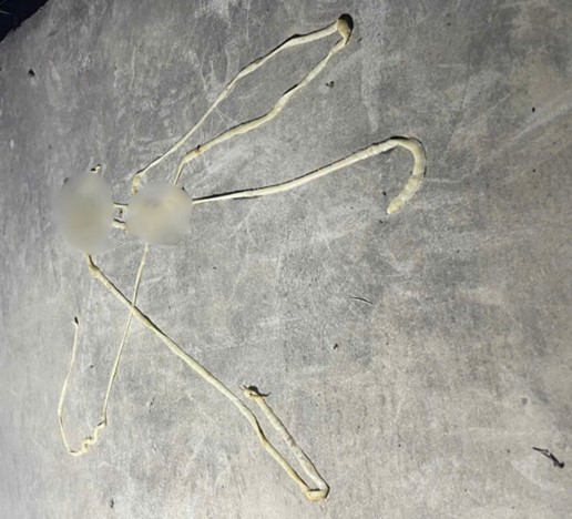 Hình ảnh sán lợn dài gần 10 mét được bệnh nhân phát hiện khi đi đại tiện. Ảnh: BVCC.