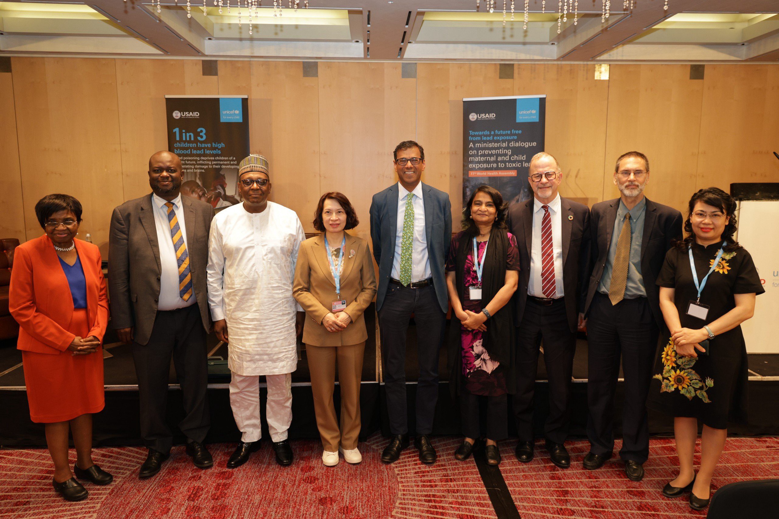 Trong thời gian đoàn công tác Bộ Y tế tham dự Kỳ họp lần thứ 77 của Đại hội đồng Y tế thế giới, nhận lời mời của Quỹ Nhi đồng Liên hợiệp quốc (UNICEF), Thứ trưởng Bộ Y tế Nguyễn Thị Liên Hương đã tham gia phiên thảo luận tại sự kiện bên lề do UNICEF và Cơ quan Phát triển Quốc tế Mỹ (USAID) phối hợp tổ chức về dự phòng ngộ độc chì cho bà mẹ và trẻ em. Tham dự sự kiện trên còn có TS. Anshu Banerjee, Giám đốc về sức khỏe Bà bà mẹ, trẻ sơ sinh, trẻ em, thiếu niên và già hóa, của Tổ chức Y tế thế giới; ông Ted Chaiban, Phó Giám đốc điều hành, Hoạt động cung ứng và hành động nhân đạo, UNICEF; TS. Atul Gawande, Giám đốc Chương trình Y tế Toàn cầu của USAID; TS. Ngashi Ngongo, Chánh Văn phòng và Trưởng Văn phòng điều hành, Trung tâm kiểm soát và phòng ngừa dịch bệnh Châu Phi.