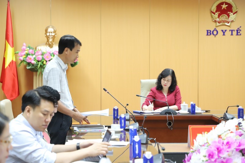 Đại diện các đơn vị báo cáo với Bộ trưởng Bộ Y tế Đào Hồng Lan