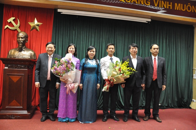 Đồng chí Bộ trưởng, Trưởng Ban trao Quyết định và tặng hoa chúc mừng các đồng chí được bổ nhiệm
