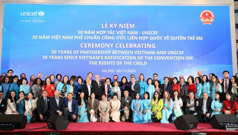 Sáng 26/11/2025, tại Hà Nội, Chính phủ Việt Nam và Quỹ Nhi đồng Liên hợp quốc (UNICEF) phối hợp tổ chức Lễ kỷ niệm 50 năm hợp tác giữa Việt Nam và UNICEF, 35 năm Việt Nam phê chuẩn Công ước Liên hợp quốc về Quyền trẻ em.