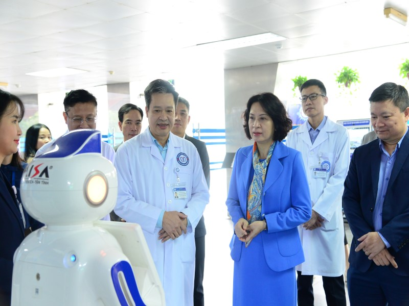 Thứ trưởng Bộ Y tế Nguyễn Thị Liên Hương tham quan, kiểm tra cơ sở vật chất, trang thiết bị phục vụ chuyển đổi số tại bệnh viện
