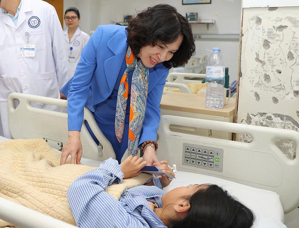Thứ trưởng Bộ Y tế Nguyễn Thị Liên Hương thăm, động viên và tặng quà tới bệnh nhân đang điều trị tại Bệnh viện