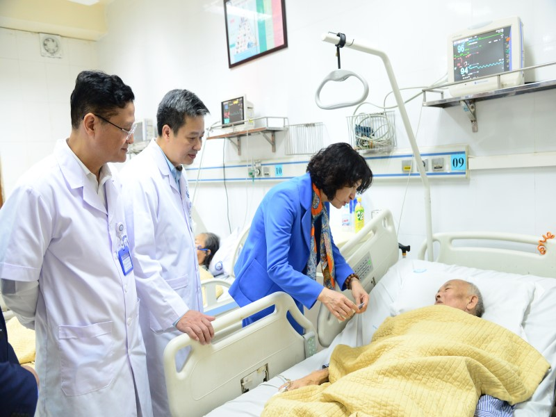 Trước khi chúc Tết lãnh đạo, cán bộ chủ chốt, người lao động của Bệnh viện, Thứ trưởng Bộ Y tế Nguyễn Thị Liên Hương đã tới thăm, tặng quà và động viên bệnh nhân đang điều trị tại khoa Điều trị tích cực. Tại đây Thứ trưởng Bộ Y tế gửi lời chúc mừng năm mới, chúc người bệnh sớm hồi phục, nhanh được về đón Tết cùng gia đình.