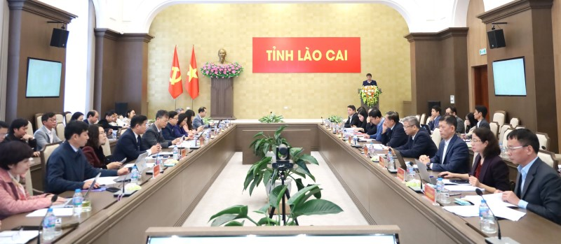 Phó Chủ tịch UBND tỉnh Lào Cai Nguyễn Thành Sinh phát biểu tại buổi làm việc