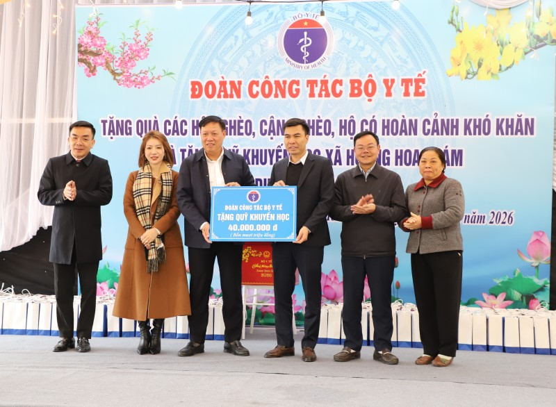 Tại chương trình, Đoàn công tác trao 200 suất quà Tết tặng các hộ nghèo, hộ cận nghèo, hộ có hoàn cảnh đặc biệt khó khăn tại 4 thôn: Nội Mai, Nội Thượng, Nội Lễ và An Xá. Mỗi suất trị giá 875.000 đồng, gồm 500.000 đồng tiền mặt và quà Tết. Nhân dịp này, Đoàn công tác Bộ Y tế cũng trao tặng Quỹ Khuyến học xã Hoàng Hoa Thám số tiền 40 triệu đồng. Sự đồng hành này là nguồn động viên to lớn giúp bà con nhân dân xã Hoàng Hoa Thám có thêm động lực đón một mùa xuân mới an khang, thịnh vượng.
