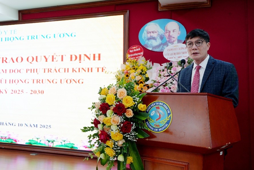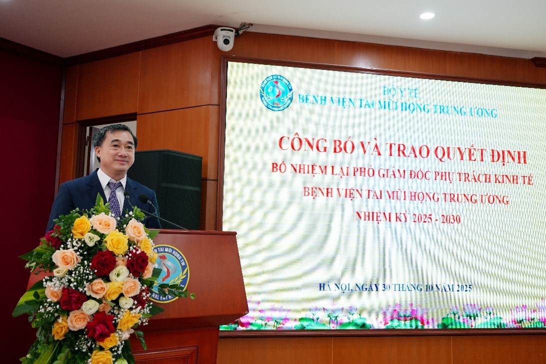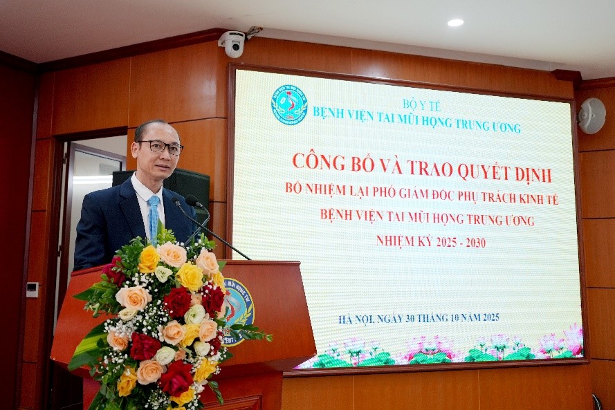Sáng 30/10/2025, tại Bệnh viện Tai Mũi Họng Trung ương, Bộ Y tế tổ chức Lễ công bố và trao Quyết định của Bộ trưởng Bộ Y tế bổ nhiệm lại chức vụ Phó Giám đốc phụ trách kinh tế Bệnh viện Tai Mũi Họng Trung ương đối với ThS.KS Đỗ Việt Thắng.