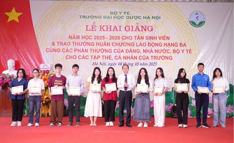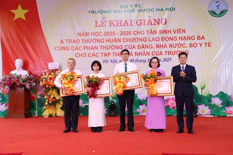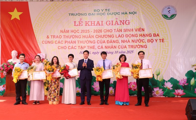 Thứ trưởng Thường trực Bộ Y tế Vũ Mạnh Hà thừa ủy quyền của Bộ trưởng Bộ Y tế trao Bằng khen của Bộ trưởng Bộ Y tế tặng 7 tập thể, 6 cá nhân là những cán bộ, giảng viên của trường Đại học Dược Hà Nội có thành tích xuất sắc trong công tác đào tạo, nghiên cứu khoa học.