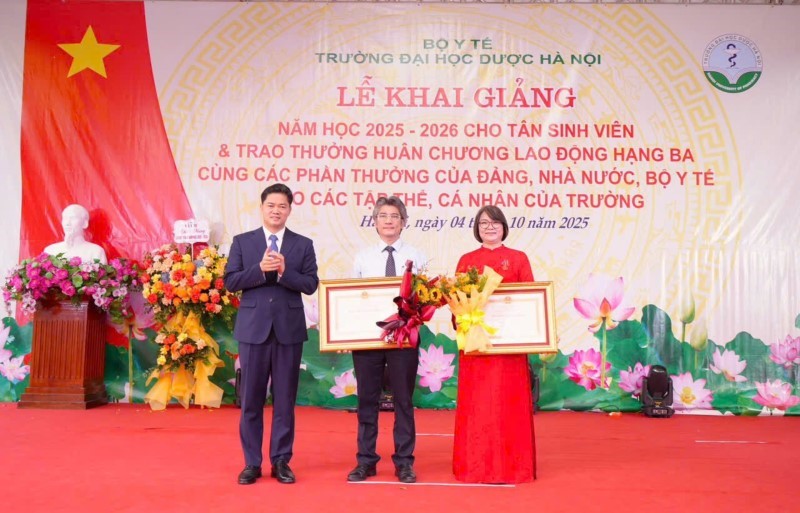 Trong không khí trang trọng, Thừa ủy quyền của Chủ tịch nước, Thứ trưởng Thường trực Vũ Mạnh Hà trao Huân chương Lao động hạng Ba tới GS.TS Nguyễn Hải Nam, Hiệu trưởng trường Đại học Dược Hà Nội; TS.Đinh Thị Thanh Hải, Phó Hiệu trưởng trường Đại học Dược Hà Nội. Khẳng định sự ghi nhận của Đảng, Nhà nước đối với những đóng góp quan trọng của 2 đồng chí trong sự nghiệp giáo dục đào tạo, nghiên cứu khoa học.