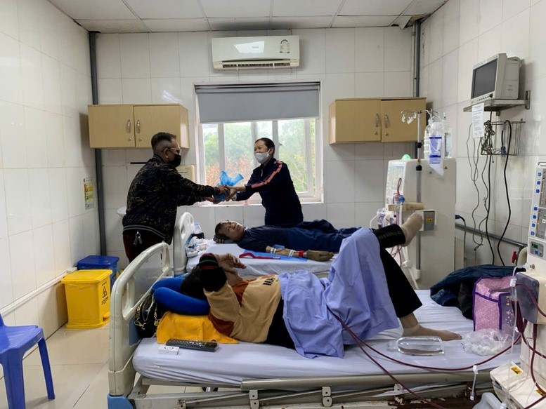 Tặng quà Tết, động viên bệnh nhân tại Khoa thận nhân tạo, Bệnh viện Thanh Nhàn - Ảnh: VGP/Thiện Tâm