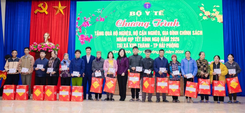 Nhân dịp đón Xuân Bính Ngọ 2026, Bộ trưởng Y tế tặng quà Tết và gửi lời chúc mừng năm mới sức khỏe, hạnh phúc và thành công đến toàn thể đội ngũ thầy thuốc, viên chức, người lao động của ngành Y tế thành phố Hải Phòng. Trong khuôn khổ chương trình, Bộ trưởng Bộ Y tế Đào Hồng Lan trao quà Tết của Tổng Liên đoàn Lao động Việt Nam đến các đoàn viên công đoàn ngành Y tế có thành tích tiêu biểu tại các đơn vị.