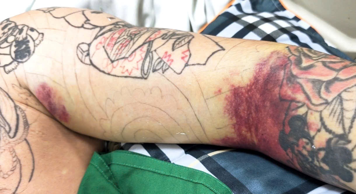 Sau ba ngày điều trị, bệnh không thuyên giảm. Tay trái anh T. bắt đầu sưng nề, đau tức, xuất hiện tụ máu và xuất huyết dưới da. Siêu âm cho thấy có khối tụ máu trong cơ cẳng tay, bệnh nhân được chuyển đến Bệnh viện Bệnh Nhiệt đới Trung ương.