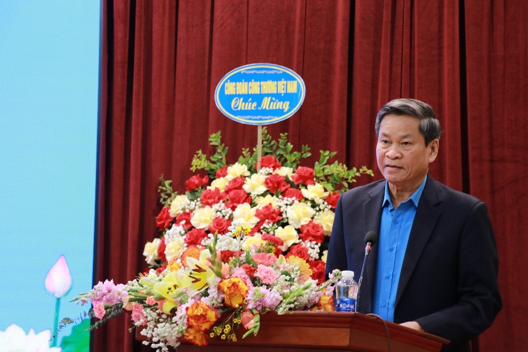 Đồng chí Huỳnh Thanh Xuân, Phó Chủ tịch Tổng Liên đoàn Lao động Việt Nam phát biểu chỉ đạo Hội nghị