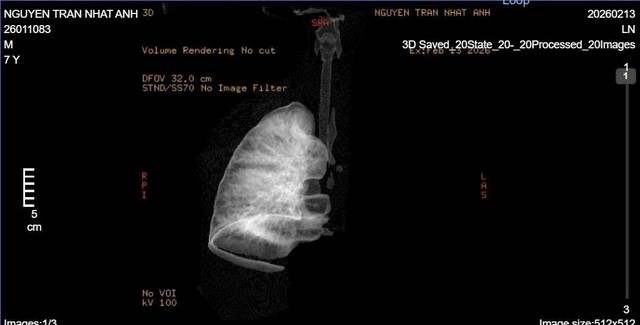 Sáng 15/2, thông tin từ Khoa Tai mũi họng - Bệnh viện Sản Nhi Nghệ An cho biết, vừa tiếp nhận bệnh nhi N.T.N.A (7 tuổi, trú xã An Châu, Nghệ An) trong tình trạng khó thở, tím tái. Khám lâm sàng ghi nhận lồng ngực trái di động kém, gần như mất rì rào phế nang bên trái, SpO₂ giảm.