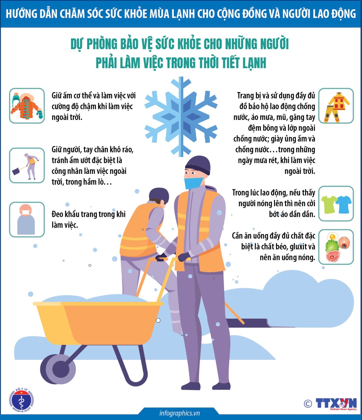 Ngoài nhóm nguy cơ cao như người già, trẻ nhỏ và phụ nữ mang thai, người lao động làm việc ngoài trời, công nhân, nông dân… cũng đối mặt với nhiều rủi ro hơn trong mùa lạnh. Làm việc trong môi trường gió rét, thiếu ánh nắng mặt trời khiến cơ thể dễ suy giảm sức đề kháng, gia tăng khả năng mắc bệnh hô hấp và bệnh da liễu.