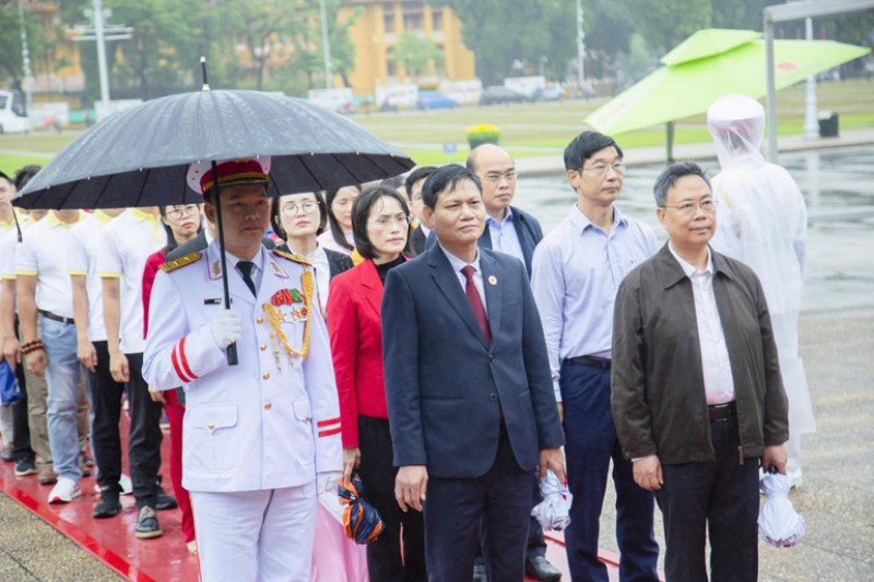 Các tấm gương hiến tiểu cầu tiêu biểu thực hiện nghi lễ báo công trước Lăng Chủ tịch Hồ Chí Minh sáng 1/11.