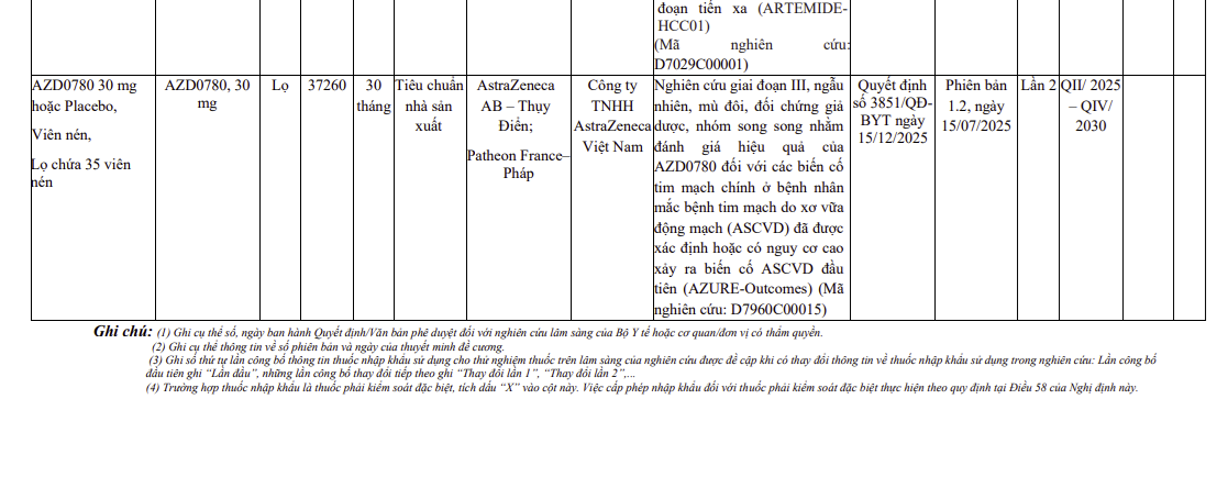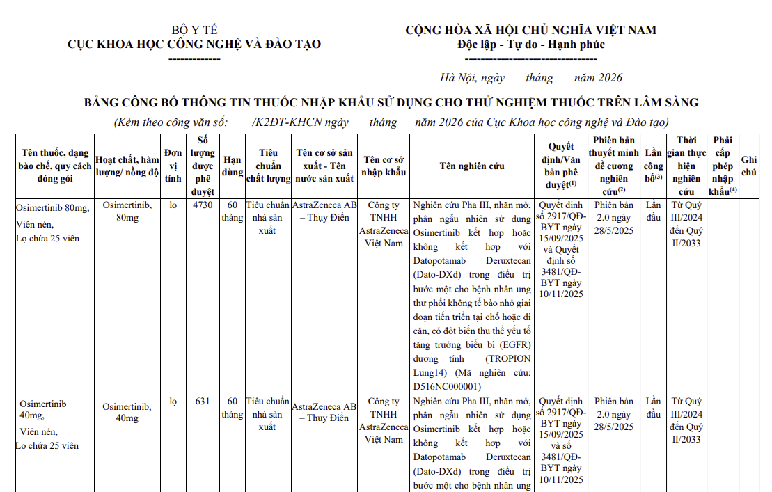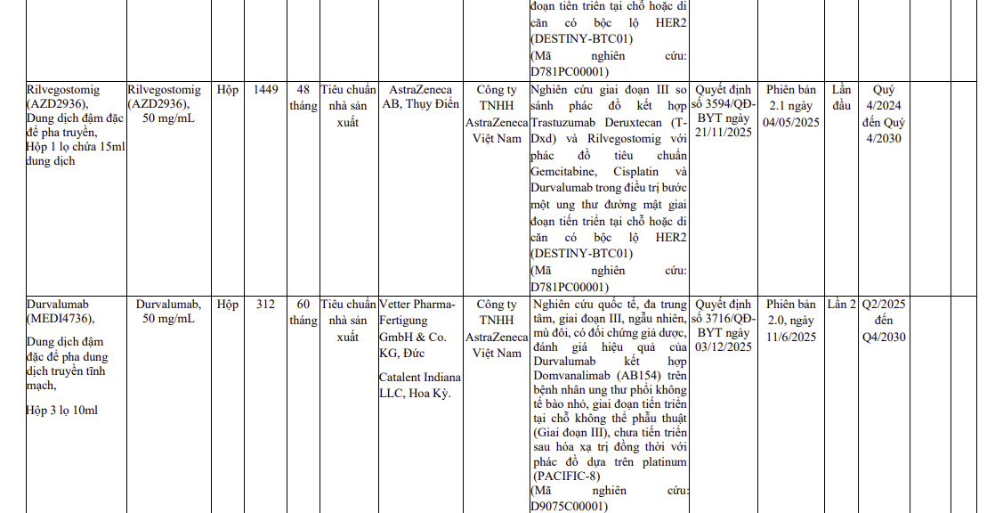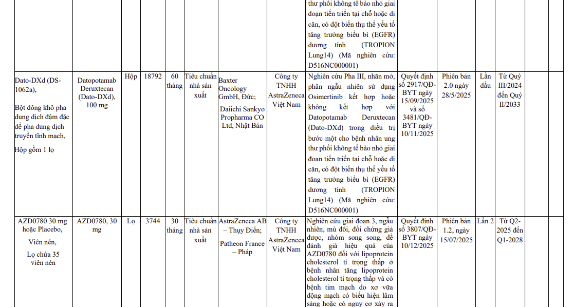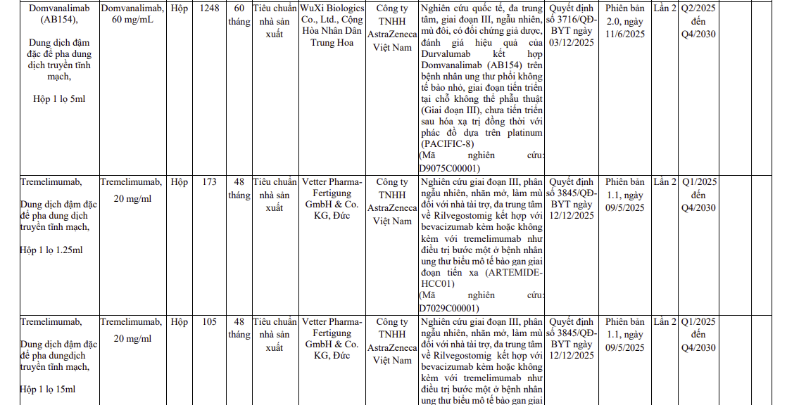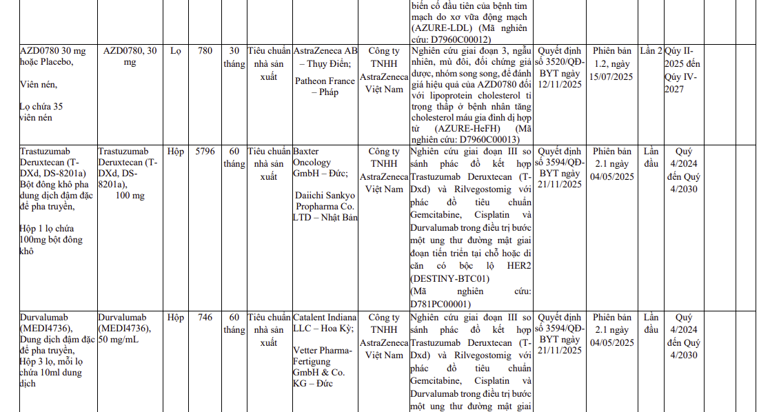 Thông tin các thuốc nhập khẩu sử dụng cho thử nghiệm thuốc trên lâm sàng (369)