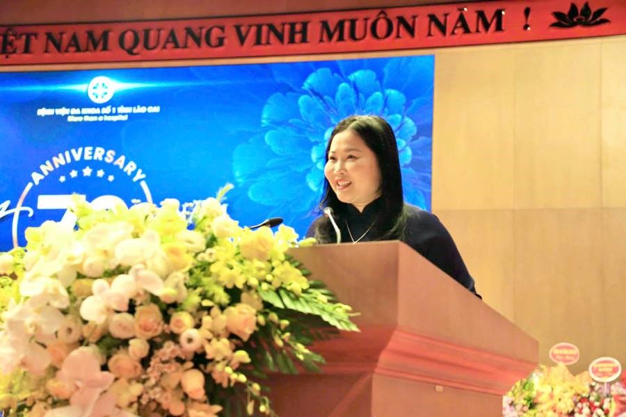 Phát biểu tại buổi lễ, đồng chí Thứ trưởng Bộ Y tế Lê Đức Luận và đồng chí Phó Chủ tịch UBND tỉnh Lào Cai Vũ Thị Hiền Hạnh ghi nhận, biểu dương những thành tích nổi bật của bệnh viện trong chặng đường 70 năm qua, đồng thời đề nghị đơn vị tiếp tục phát huy vai trò bệnh viện hạt nhân của tỉnh, phát triển theo hướng chuyên sâu, hiện đại, hội nhập quốc tế, đáp ứng ngày càng tốt hơn nhu cầu chăm sóc sức khỏe nhân dân. Lễ kỷ niệm là dịp để tri ân các thế hệ cán bộ y tế đi trước, ôn lại truyền thống vẻ vang và khẳng định quyết tâm của tập thể Bệnh viện Đa khoa tỉnh Lào Cai (cơ sở 1) tiếp tục đổi mới, nâng cao chất lượng khám chữa bệnh, phục vụ nhân dân theo phương châm “Chuyên nghiệp - Hiện đại - Nhân văn - Vì sức khỏe nhân dân”, hướng tới mục tiêu trở thành bệnh viện hạng I vững mạnh, trung tâm y tế chất lượng cao của khu vực trung du và miền núi phía Bắc.