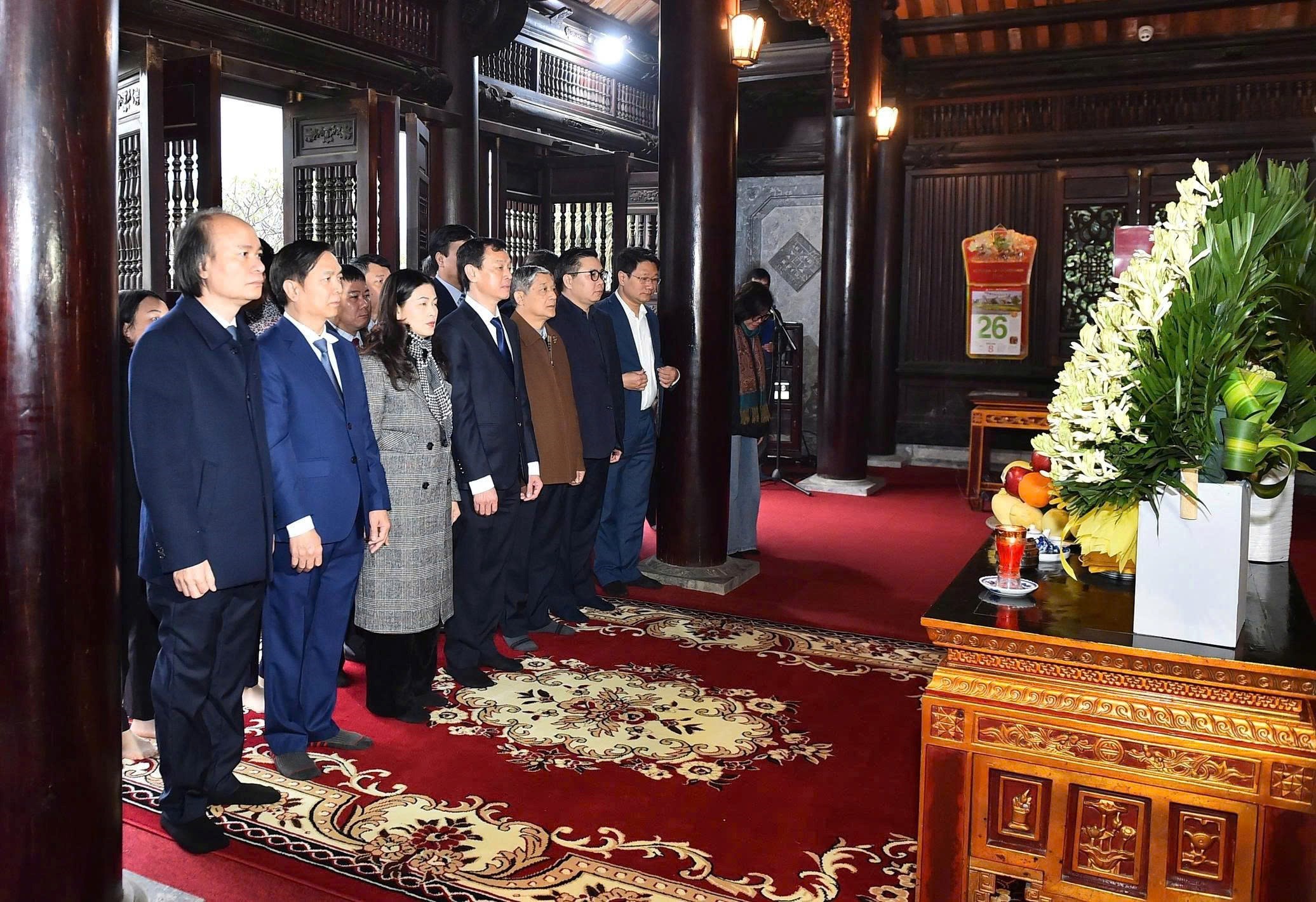 Thứ trưởng Bộ Y tế Nguyễn Tri Thức cùng Đoàn công tác; Lãnh đạo UBND tỉnh, Sở Y tế Tuyên Quang dâng hương tại Đền thờ Chủ tịch Hồ Chí Minh (phường Minh Xuân, tỉnh Tuyên Quang).