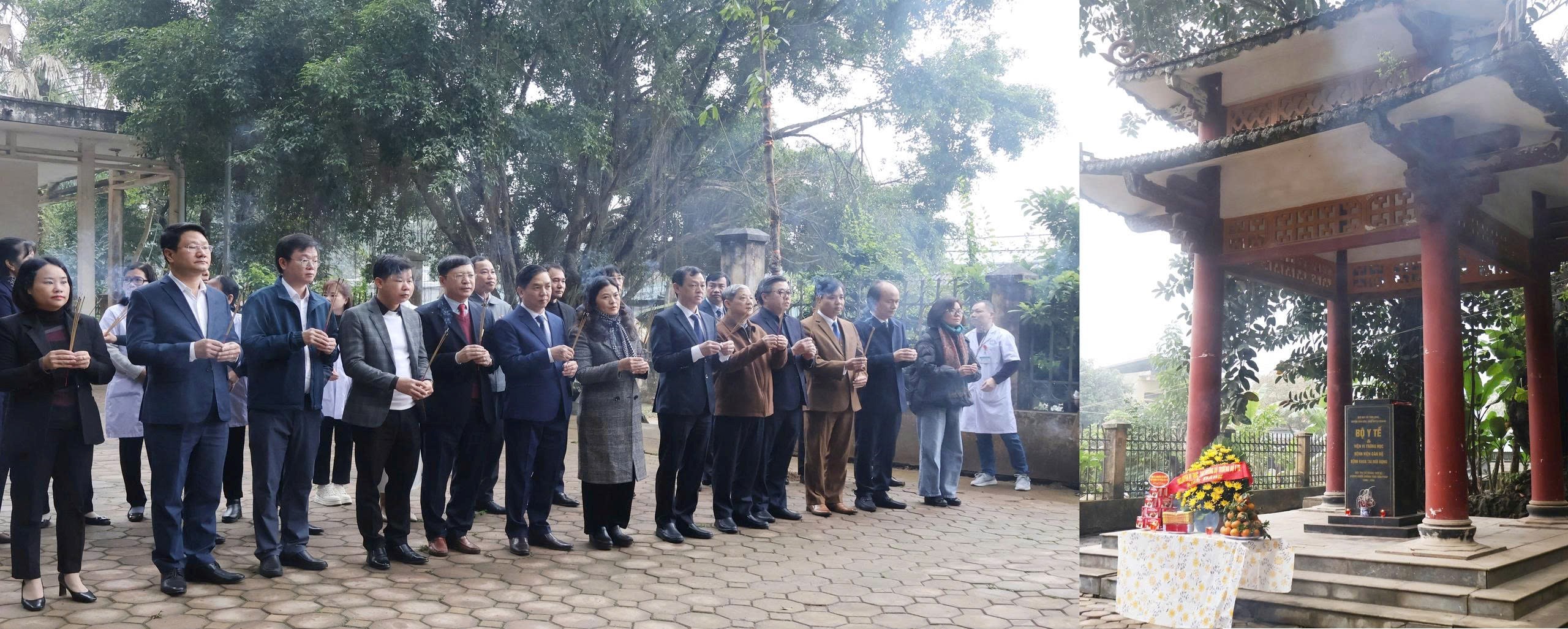 Thứ trưởng Bộ Y tế Nguyễn Tri Thức cùng Đoàn công tác; Lãnh đạo UBND tỉnh, Sở Y tế Tuyên Quang dâng hương tại Khu di tích lịch sử Bộ Y tế (xã Tân Long, tỉnh Tuyên Quang).