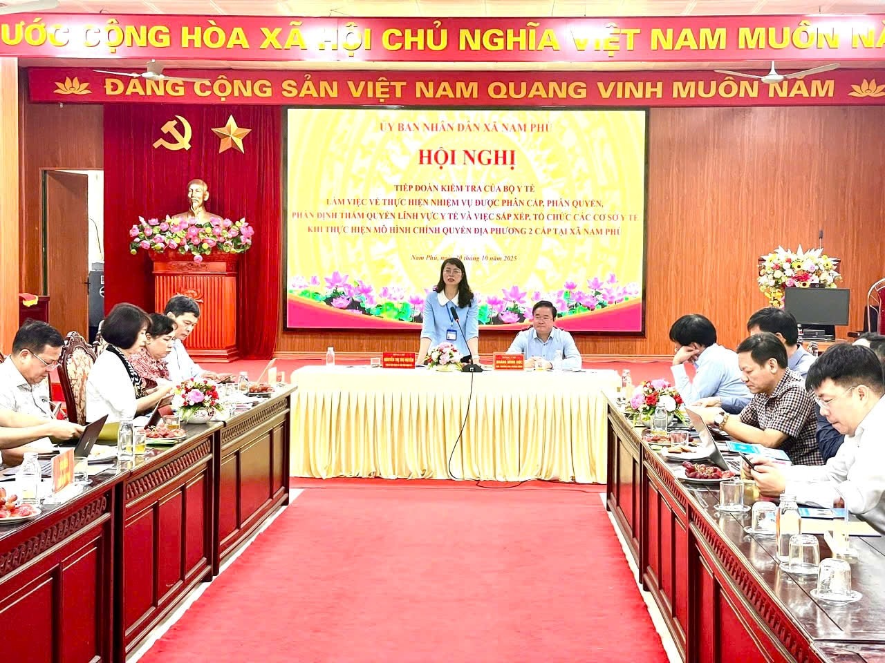 Ngày 30/10/2025, Đoàn công tác của Bộ Y tế do đồng chí Hoàng Minh Đức, Cục trưởng Cục Phòng bệnh làm Trưởng đoàn đã làm việc và kiểm tra việc thực hiện nhiệm vụ được phân cấp, phân quyền, phân định thẩm quyền trong lĩnh vực y tế tại xã Nam Phù.