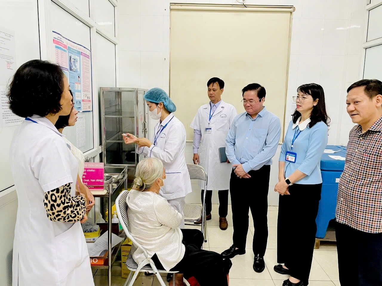 Đoàn đã kiểm tra thực tế cơ sở vật chất, quan sát hoạt động khám chuyên môn, công tác khám chữa bệnh, tiêm chủng tại Trạm Y tế xã Nam Phù. Ảnh: Phương Xuyến