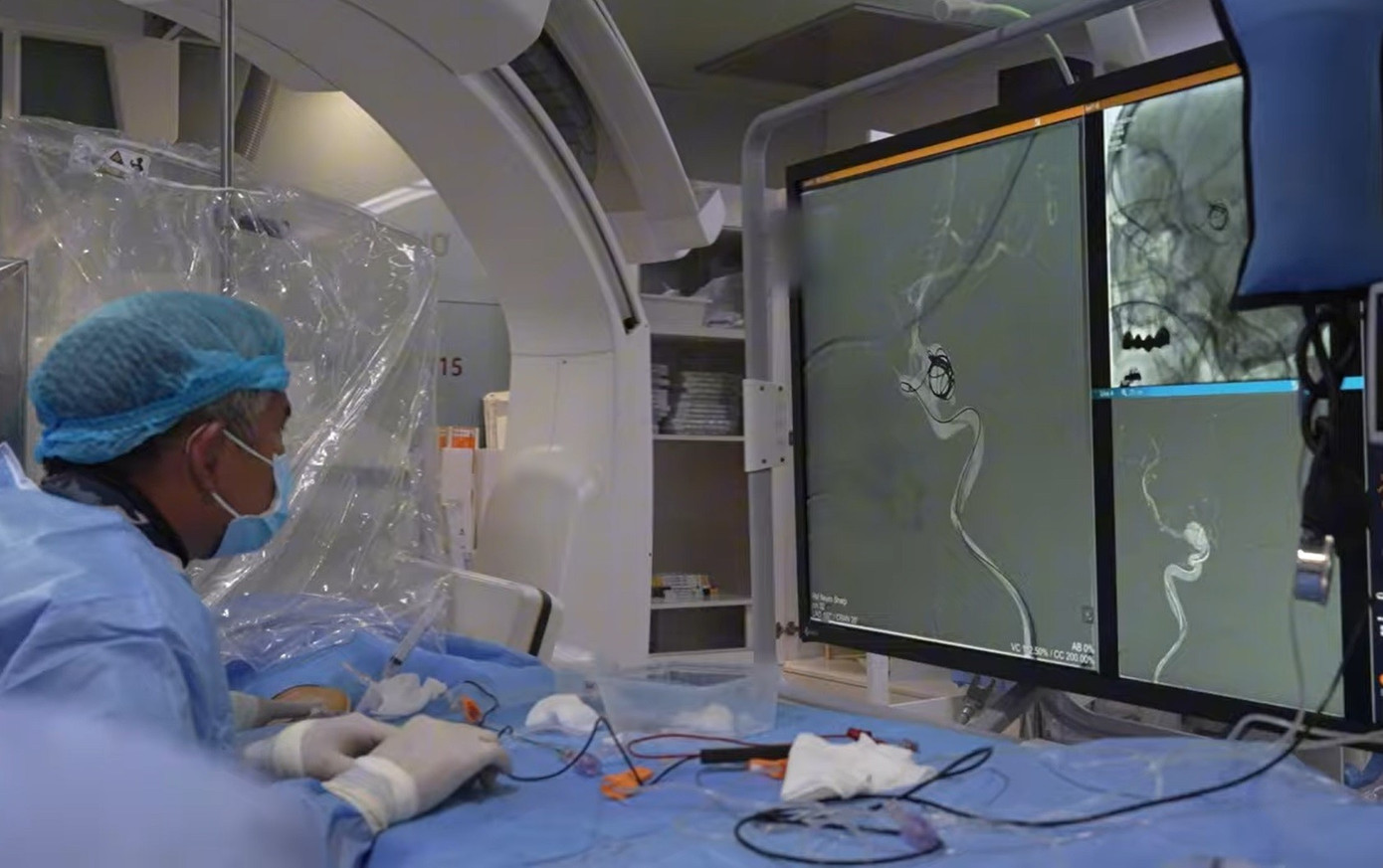 Ca can thiệp được TS.BS Trần Chí Cường trực tiếp thực hiện cùng ê kíp can thiệp thần kinh của bệnh viện. Theo các bác sĩ, đây là trường hợp có nhiều yếu tố nguy cơ cùng lúc: bệnh nhân lớn tuổi, nhập viện muộn, tình trạng tri giác suy giảm nặng trước can thiệp, nguy cơ biến chứng và tử vong rất cao. Chỉ cần chậm trễ hoặc xử trí không chính xác, cơ hội sống của bệnh nhân gần như bằng không.