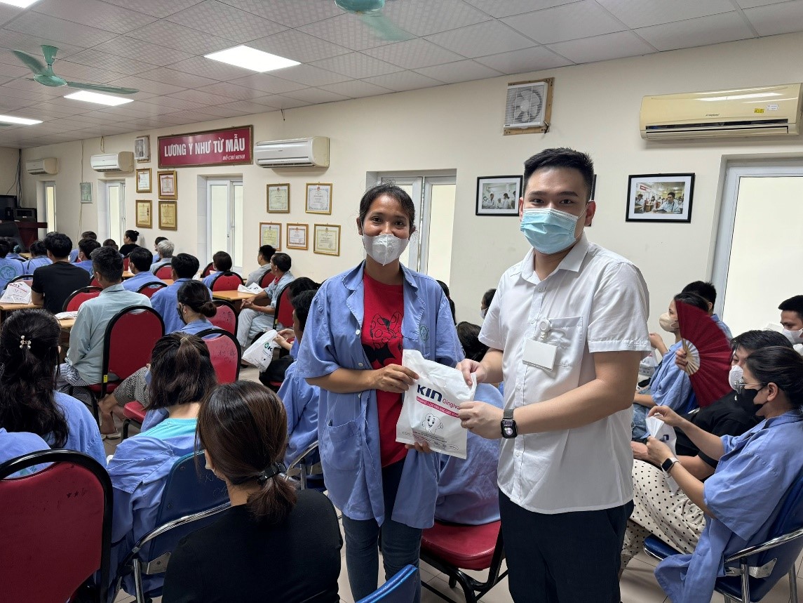 Cuối chương trình, Phòng Công tác xã hội đã trao tặng người bệnh và người nhà người bệnh tham gia chương trình một số phần quà nước súc miệng giúp phòng chống các bệnh truyền nhiễm và bệnh răng miệng.