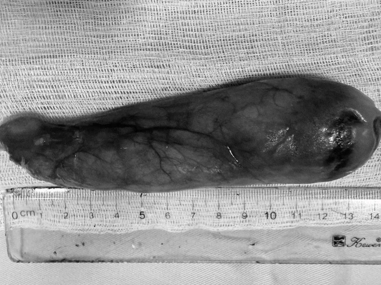 Kết quả nội soi và siêu âm nội soi cho thấy người bệnh có u mỡ thực quản dưới niêm mạc kích thước 16 x 3,5 x 3 cm – mức kích thước được đánh giá là “khổng lồ”, trong khi đa số khối u dưới niêm mạc đường tiêu hóa thường nhỏ hơn 3 cm.