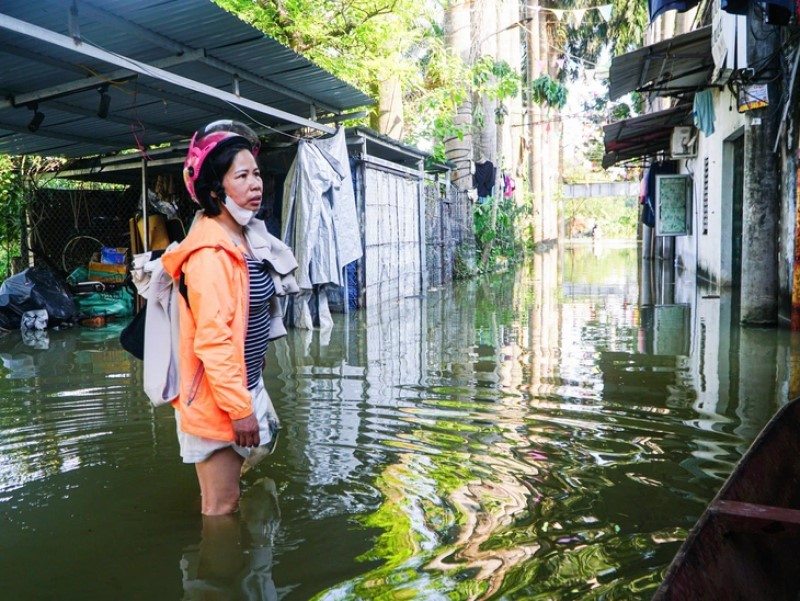 Ngập lụt tại Hà Nội làm xáo trộn cuộc sống của người dân - Ảnh: PHẠM TUẤN