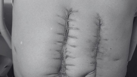Vết sẹo mổ hoại tử ruột của bệnh nhân.