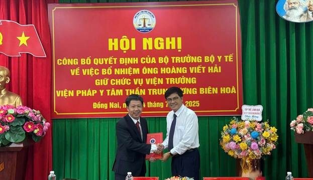Sáng ngày 14 tháng 7 năm 2025, Bộ Y tế đã tổ chức lễ công bố và trao Quyết định bổ nhiệm Viện trưởng Viện Pháp y tâm thần Trung ương Biên Hòa. Tham dự buổi lễ có Phó GS, TS Nguyễn Tuấn Hưng - Phó Vụ trưởng Vụ Tổ chức cán bộ - Bộ Y tế; đồng chí Nguyễn Văn Dũng - Phó Bí thư Đảng ủy UBND tỉnh Đồng Nai; Ban giám đốc, Phòng PA03 Công an tỉnh Đồng Nai; Lãnh đạo Viện, phân Viện và các Trung tâm Pháp y tâm thần khu vực; Ban giám đốc Bệnh viện Tâm thần Trung ương 2; cùng toàn thể lãnh đạo các khoa, phòng thuộc Viện.