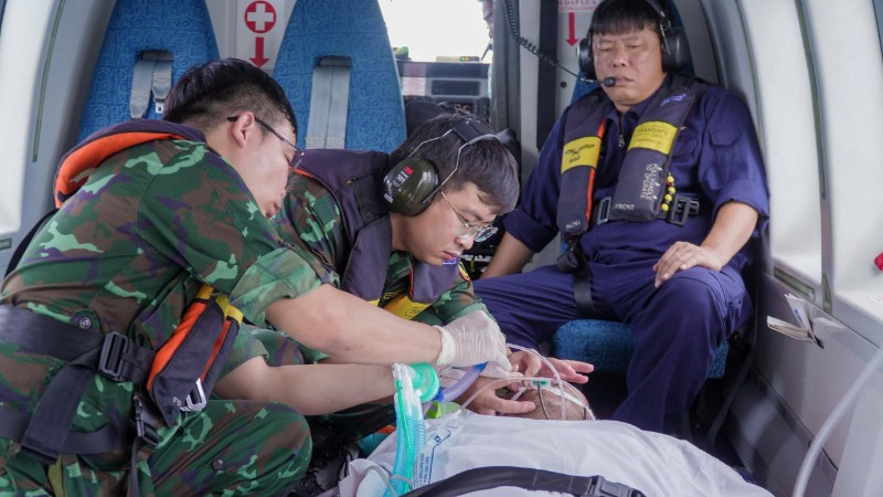 Bệnh nhân được đưa về Bệnh viện Quân y 175 bằng trực thăng để tiếp tục điều trị kịp thời.