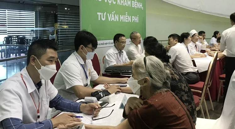 Các thầy thuốc đông y khám, tư vấn sức khỏe miễn phí cho người cao tuổi ở Hà Nội. (Ảnh: THÁI SƠN)